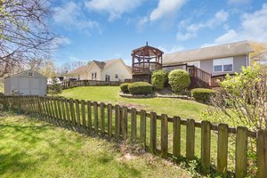 Welcome to this charming 3-bedroom, 2-bath ranch nestled on a spacious corner lot! This beautifully maintained home features an open layout with vaulted ceilings and a cozy gas fireplace in the great room. The kitchen offers a breakfast bar and all appliances stay—including the washer and dryer! The primary suite includes a double bowl vanity, separate shower, and ample closet space. Enjoy the convenience of main floor laundry and a 2-car garage. There's also a private hot tub room just off the garage, perfect for relaxing and the hot tub stays! Step outside onto the large deck with gazebo, ideal for entertaining! The unfinished walk-out lower level with roughed-in plumbing offers endless possibilities. A new roof will be installed prior to closing. Don't let this one pass you by!